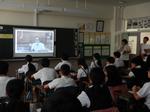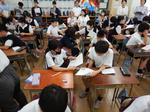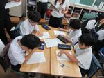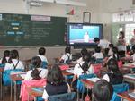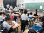 3年3組で、総合的な学習の時間「もっと知りたい!外国の学校」の校内研究授業を行いました。