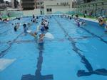 全クラス合同で着衣水泳を行いました。