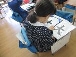 今回で4回目の習字の学習でした。今回は、初めての左はらいと右はらいに気をつけて「大」を書きました。