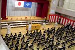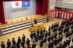 桜の花びらが舞い落ちる中、入学式が行われました。