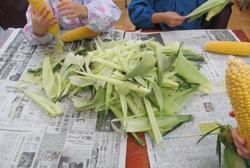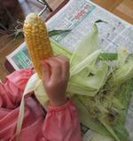 枝についたままのとうもろこしを見るのは初めての子が多く、とても興味深そうにしていました。