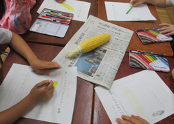 最後に、とうもろこしの絵を描いたり、観察して発見したことを書き、とうもろこしのことをたくさん知ることができたようです。